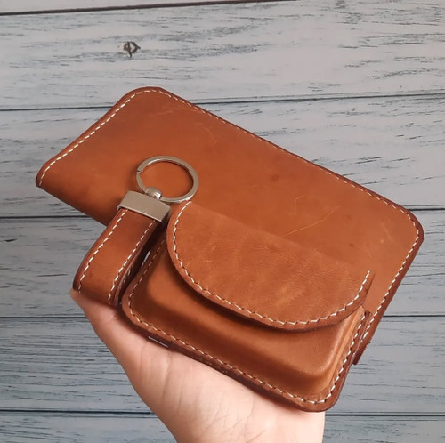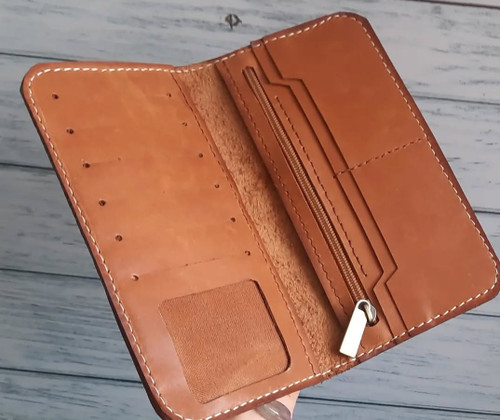 کیف پول کتی با جای موبایل چرم طبیعی دستساز
