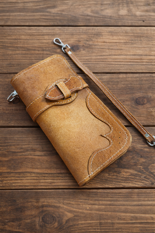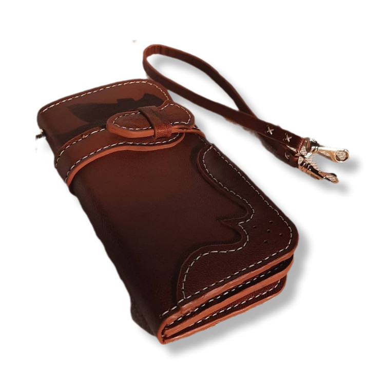 کیف پول کتی با جای موبایل چرم طبیعی دستساز