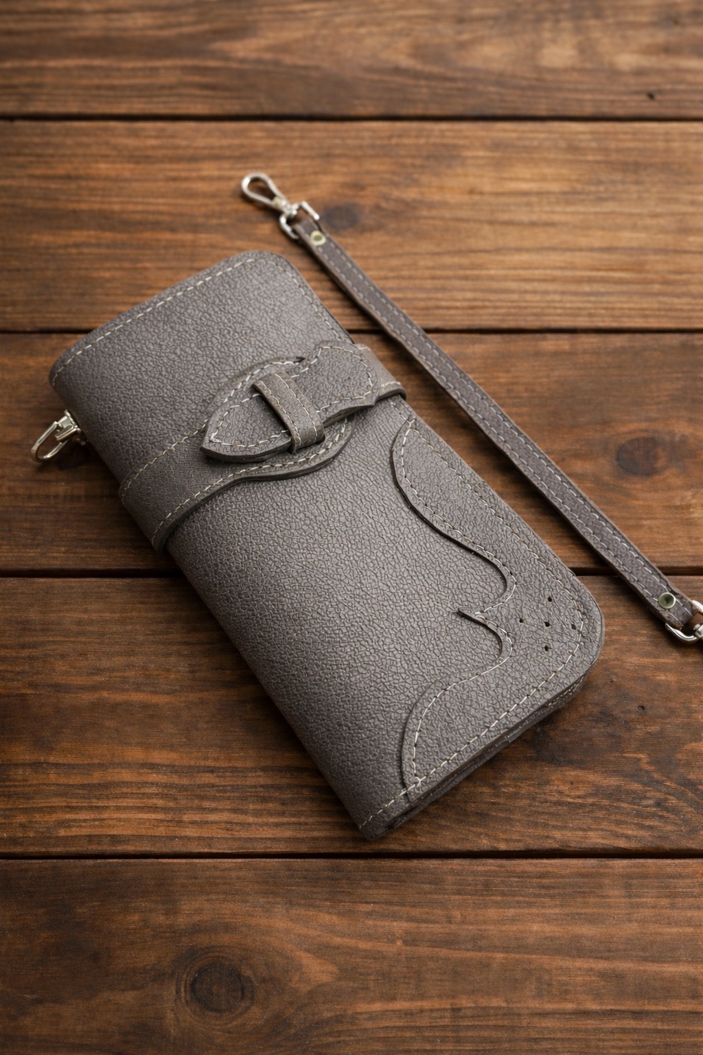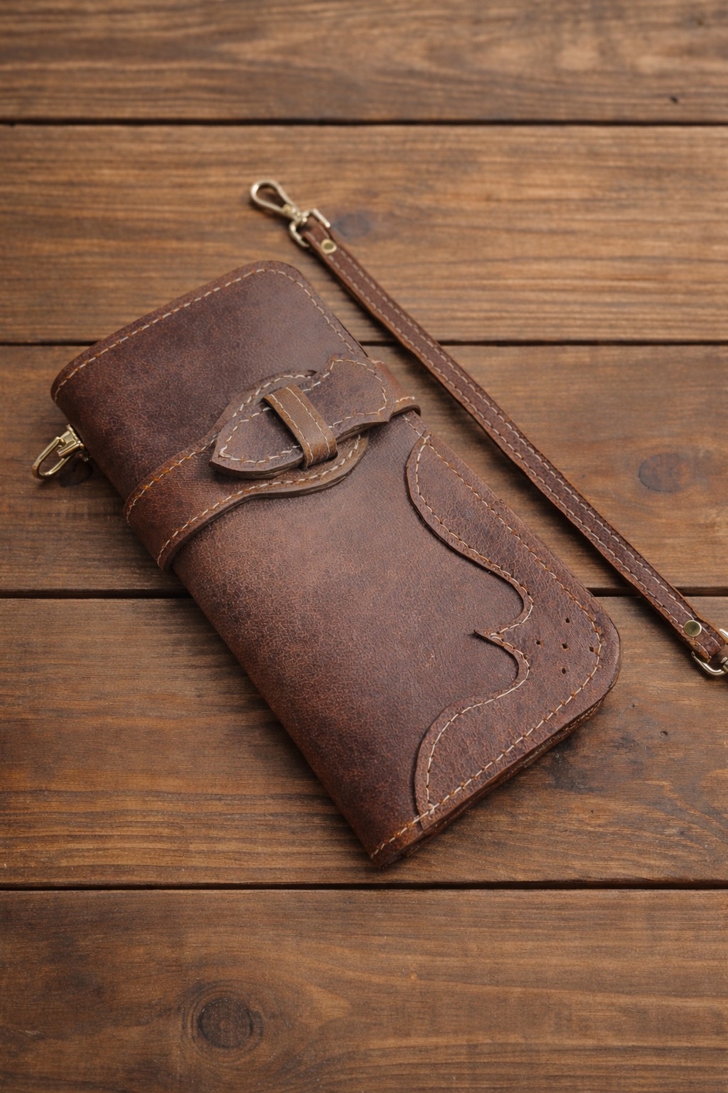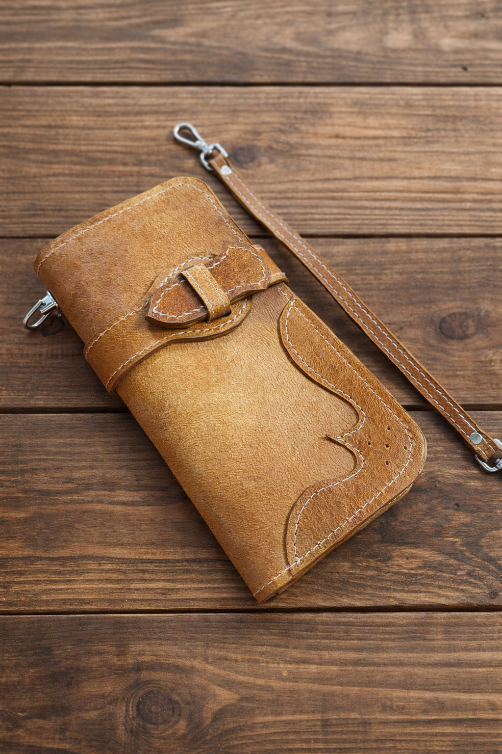 کیف پول کتی با جای موبایل چرم طبیعی دستساز