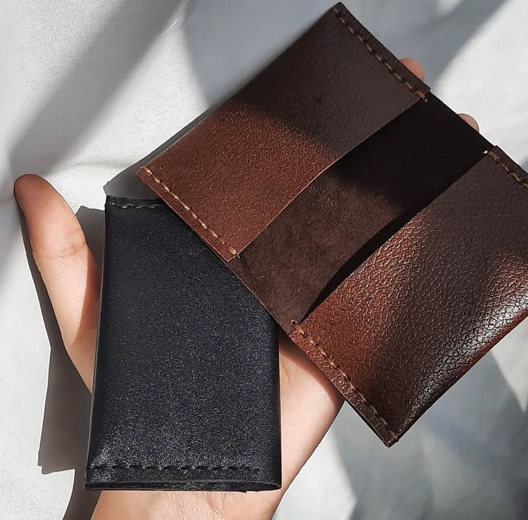 چرمش نازک و انعطاف پذیره و هر قسمت ۴/۵ عدد کارت جا میگیره✨️