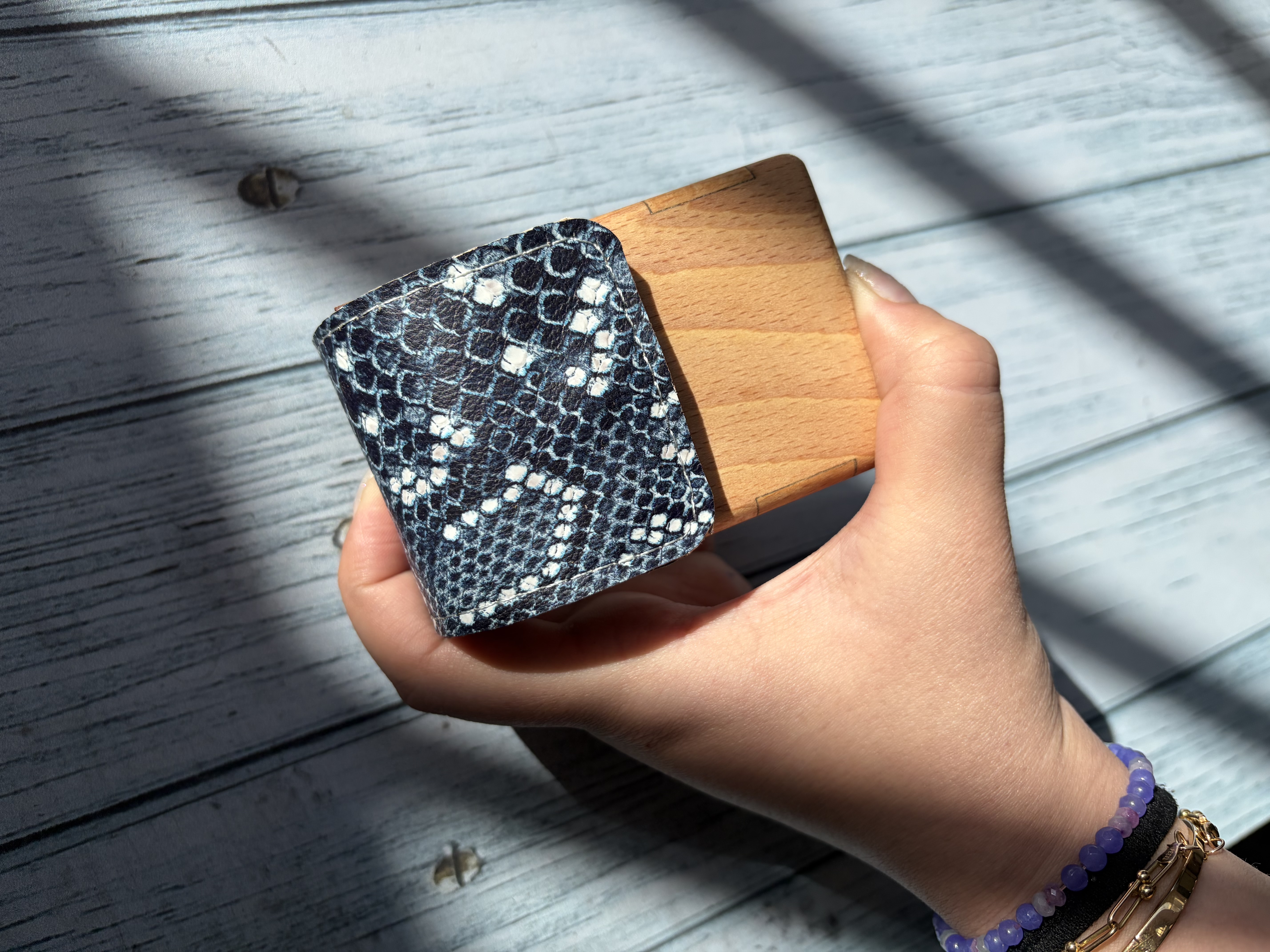 جاسیگاری چوب و چرم دستساز طرح پیتون ابی